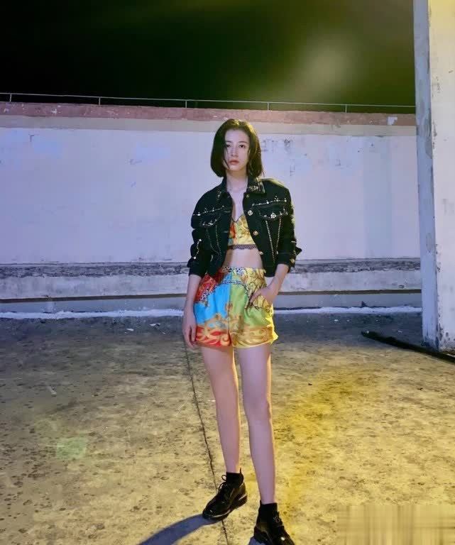 如果说金晨的半身裙偏淑女风,周雨彤的短裤就比较简约随性,更显帅气。这样的吊带露脐装单穿的话,可能会比较容易走光,最好在外面穿上一件外套。金晨选择的是黑色西装,周雨彤则选择黑色的牛仔外套,短款的版型更好拉长身材比例,整体效果很不错,展现出她的修长身材。